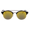 Montatura e asta in metallo color nero con terminale in acetato color nero. Le lenti assumono una morbida colorazione specchiata blue. Protezione dai raggi UV. Comprensivo di astuccio, pannetto in microfibra.